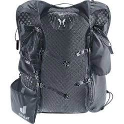 En effet, ce modèle possède un design ajustable qui peut accueillir deux gourdes souples à l’avant (inclues), plusieurs poches de rangement et des détails réfléchissants.