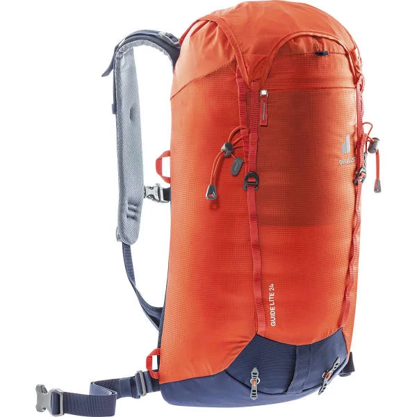 Le grand atout du sac Deuter Guide Lite 24 est son poids : seulement 650 grammes. À la fois léger et résistant, le Guide Lite 24 bénéficie d’une fabrication en 100D PA HIGH TENACITY et 630D PA (matériaux durables). Épuré et fonctionnel, ce sac à dos possède les 3 compartiments essentiels, à savoir 2 compartiments zippés de suite accessibles à partir du rabat et le compartiment principal, muni d’une poche pour système d’hydratation (ou autre équipement). L’extérieur du sac se voit équipé de passants pour porte-casque et doté de multiples porte-matériels à utilisation rapide. Les instructions en cas de confrontation à une situation de SOS sont indiquées sous le rabat.